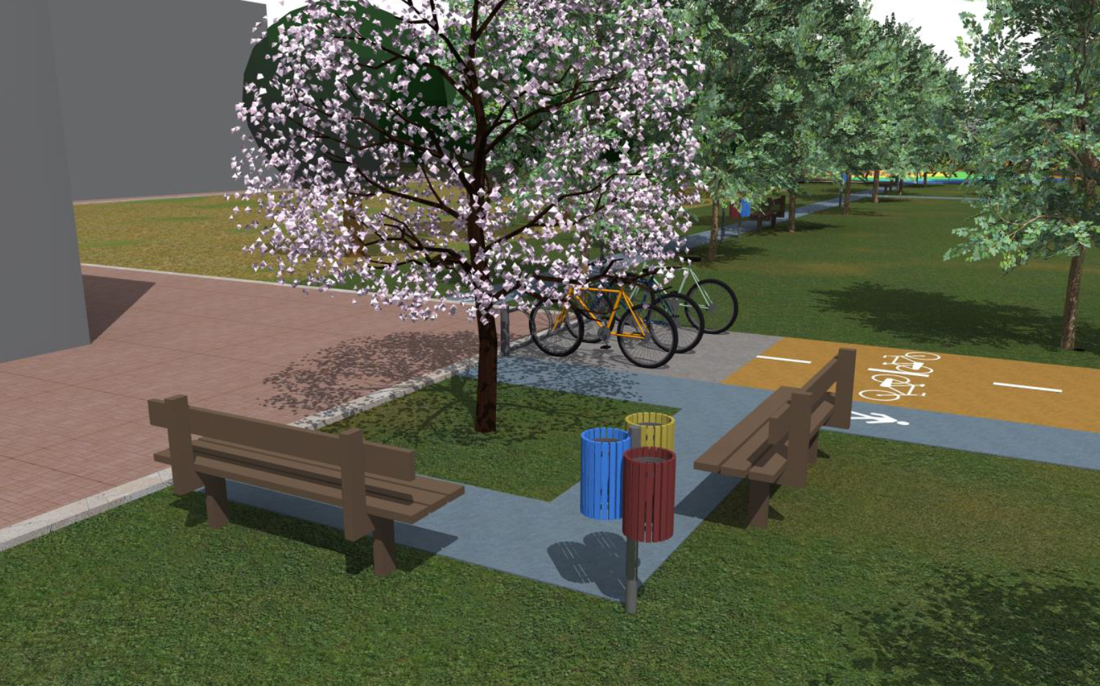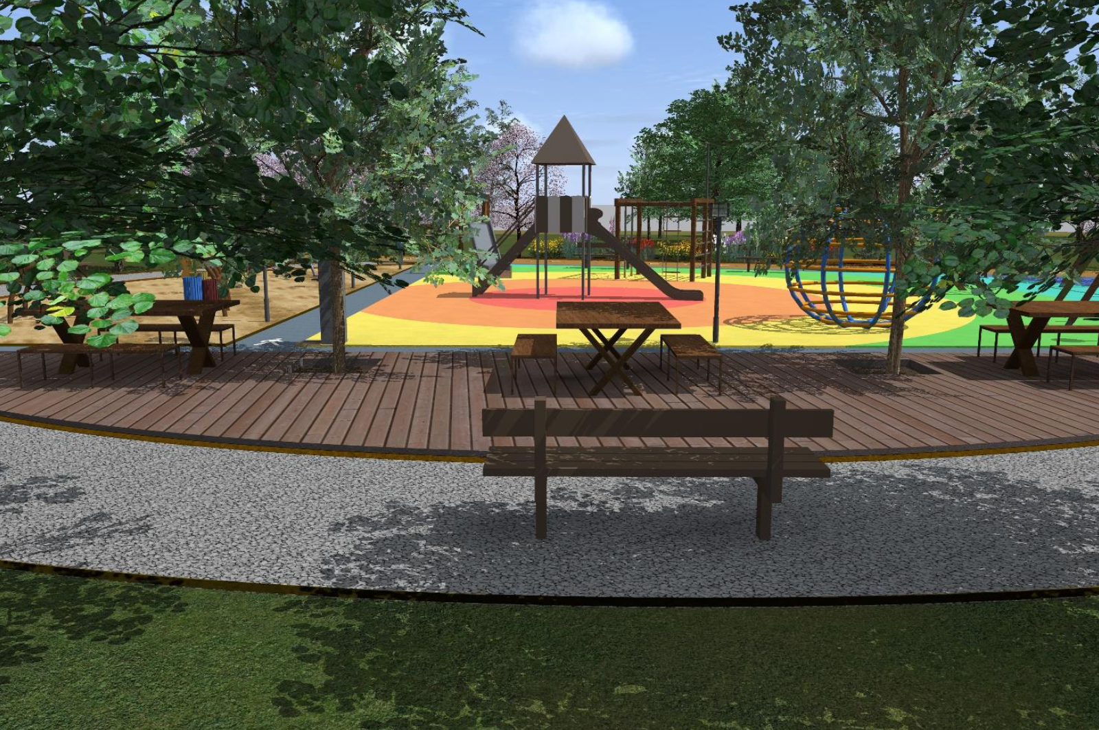 Intervento di realizzazione del prosieguo dell’area a verde pubblico con pista ciclopedonale, percorsi pedonali, impianto di pubblica illuminazione, area giochi e spazi pubblici per una superficie complessiva pari a 7.080 mq, e di una piazza in testa al parco lungo via Ezio, quale ingresso al parco.